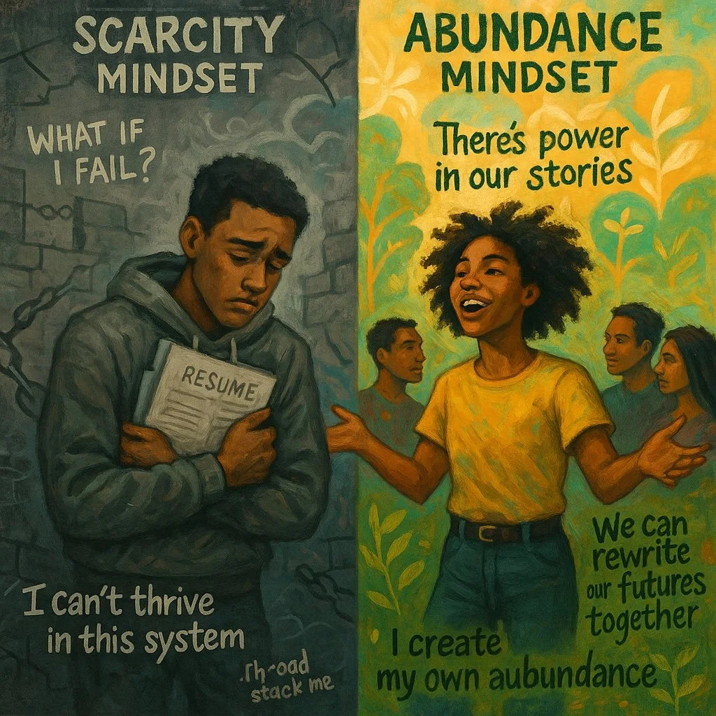This mindset doesn’t come from nowhere. It’s shaped by systems—racism, capitalism, patriarchy—that have taught many of us to survive, not to thrive. When you’ve been told (directly or indirectly) that there’s only one seat at the table—or that the table was never meant for you—it makes sense to internalize lack.